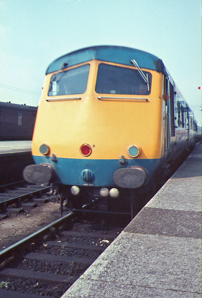 D1.1. Blue Pullman at Swansea - August 1967 | D1.2. D82 passing Kentish Town in 1964. An "early" model with gangway doors | D1.3. D124 departing light from St. Pancras in 1965 | D1.4. D202 joining its coaches at Liverpool Street in 1963 |