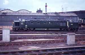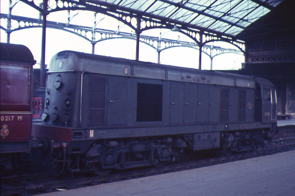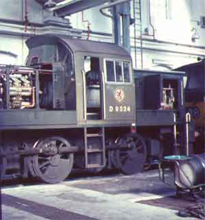 D1.25. D8036 in the old, but much less gloomy Euston of 1963 | D1.26. D8012 in the yard at Willesden Junction, 1965 | D1.27. D9524 under repair at Old Oak Common in 1965 | D1.28. D9517, unusually for this class, actually performing useful service at Cardiff - August 1967 |